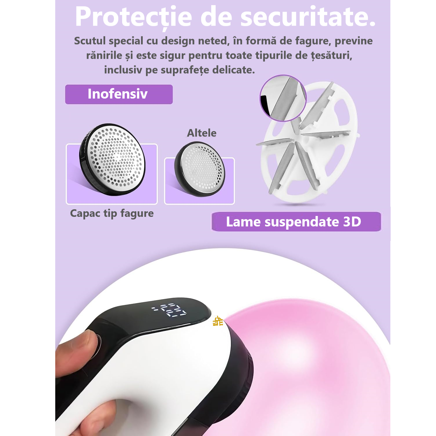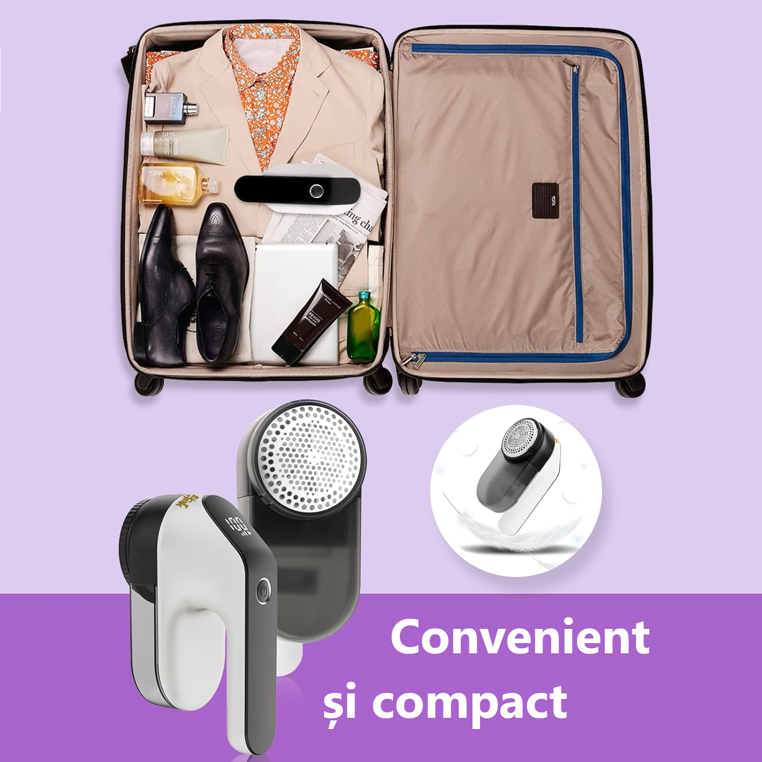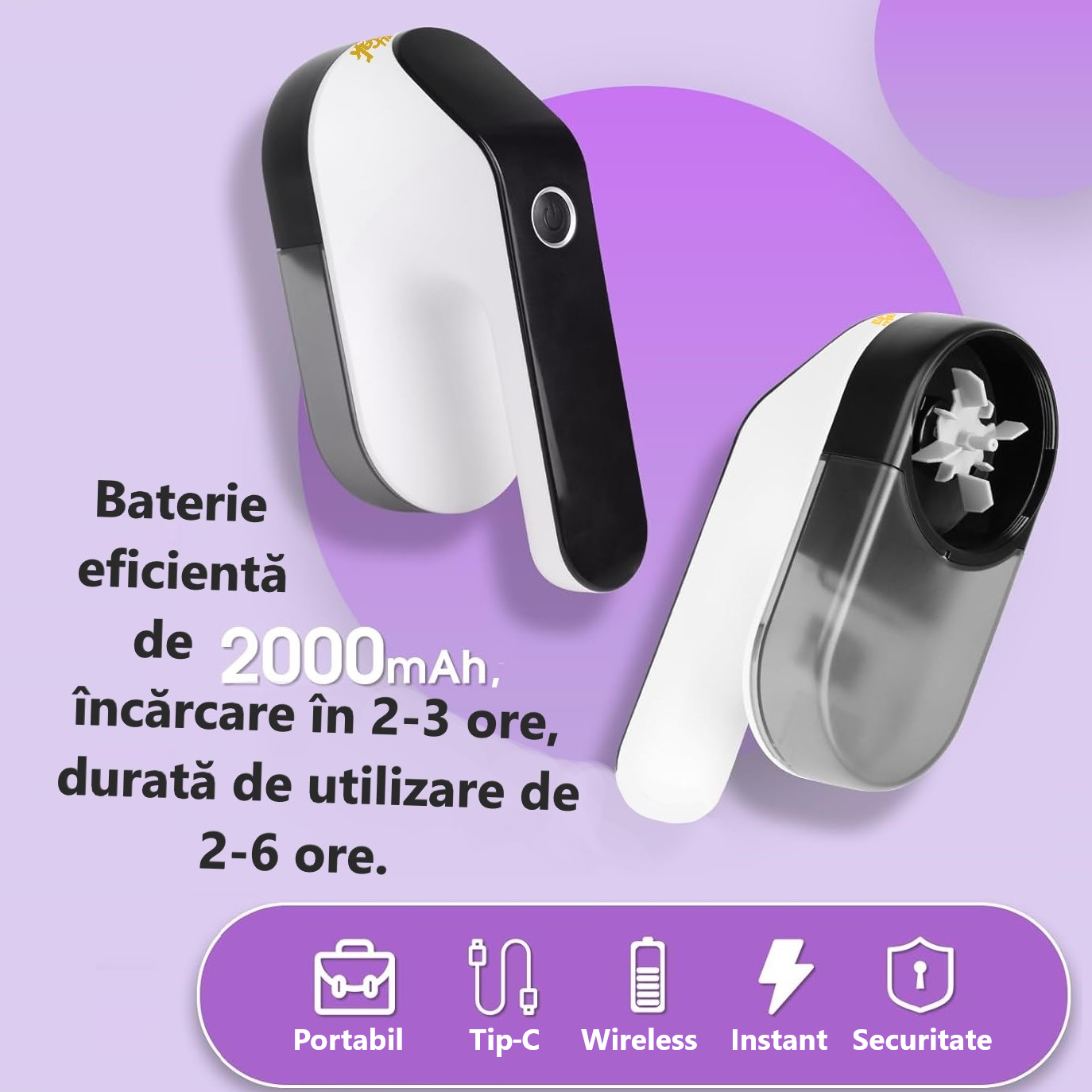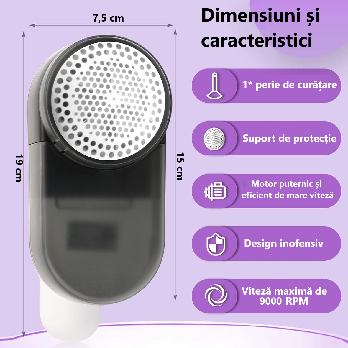 Aparat electric pentru indepartarea scamelor, Lucmark, Acumulator, Portabil, 9000 rpm, Alb-negru