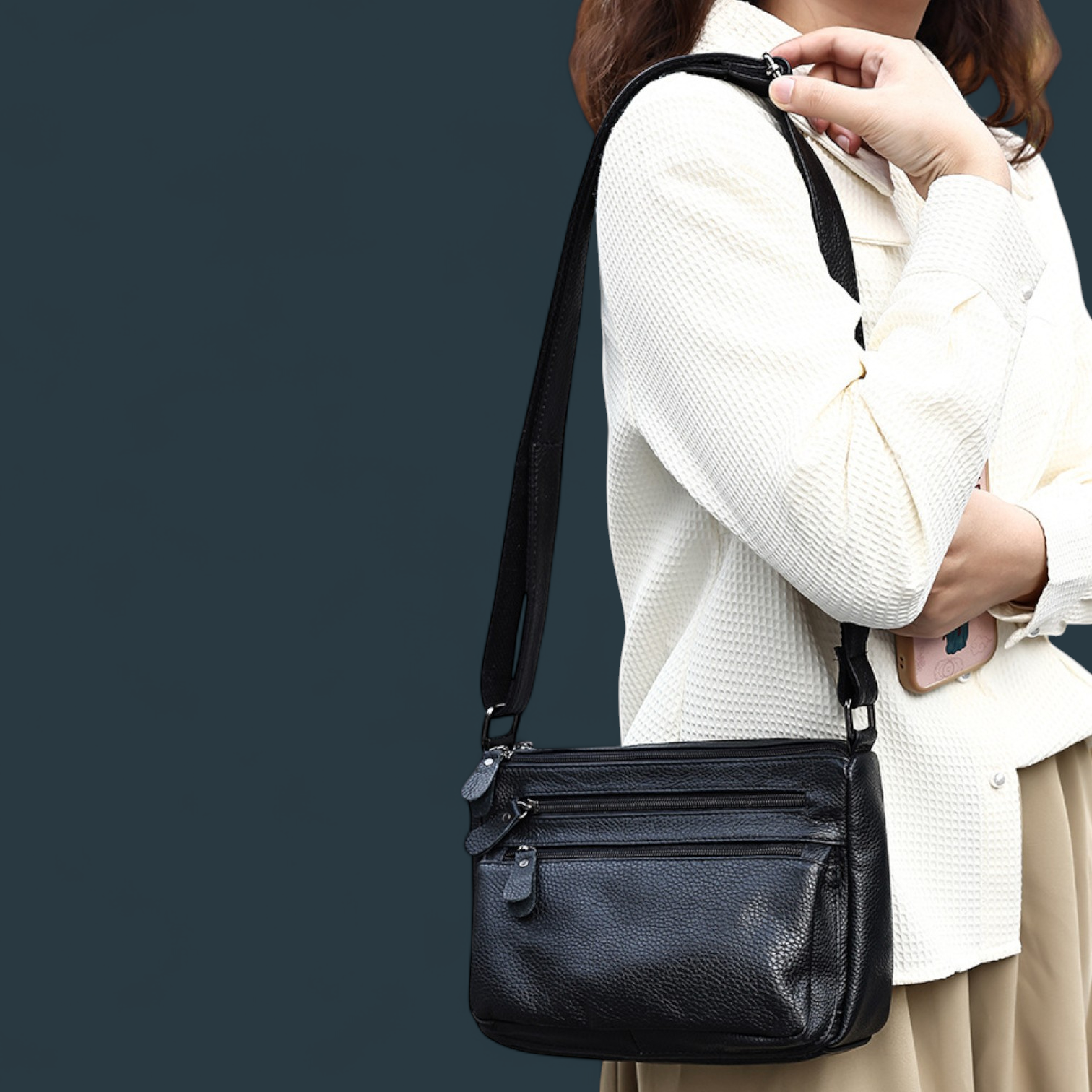 Cureaua de umar reglabila permite purtarea confortabila, adaptandu-se stilului tau – fie pe umar, fie in diagonala, pentru un look relaxat sau elegant.
