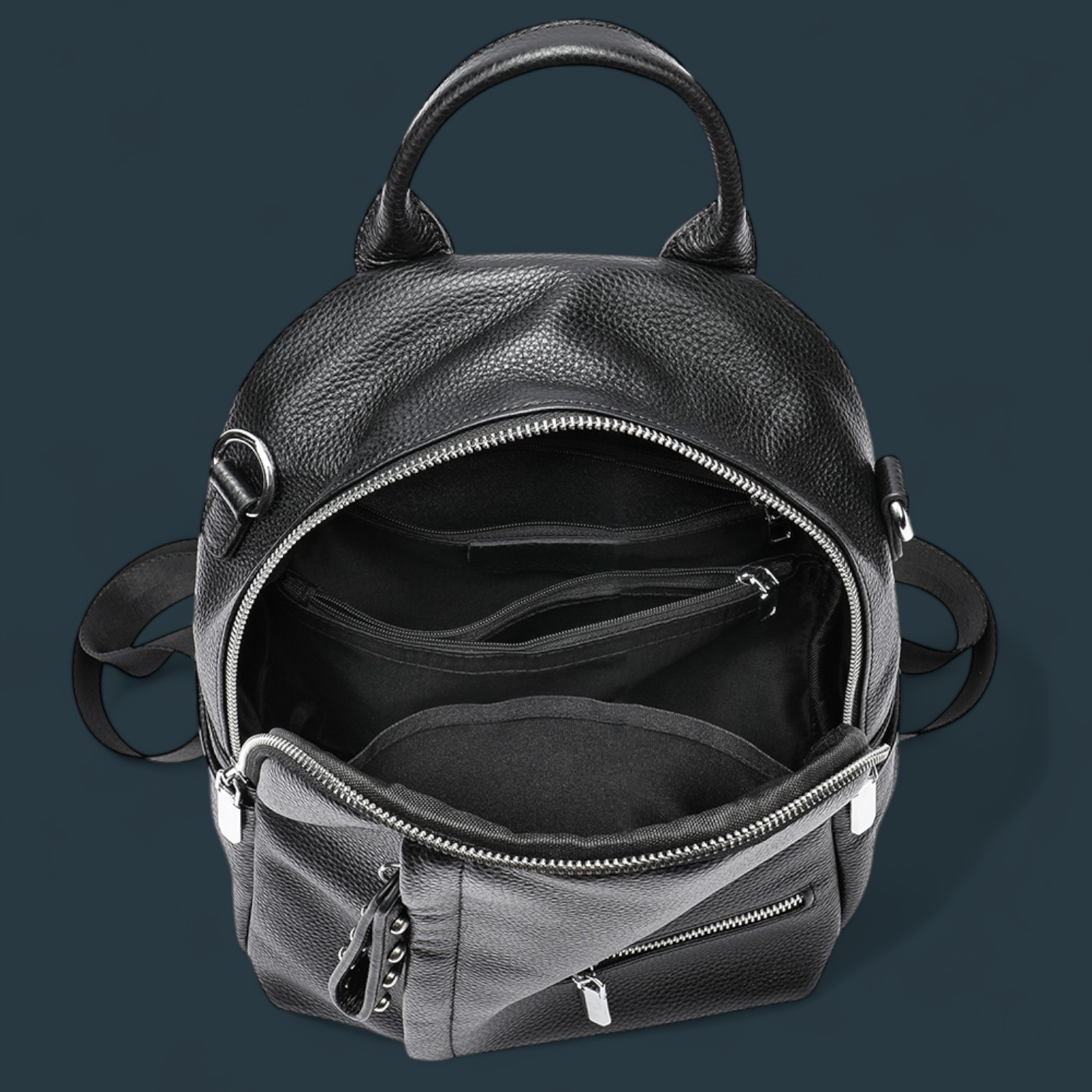 Aceasta geanta tip rucsac imbina eleganta pielii naturale cu un design practic – perfect pentru femeile moderne, active si stilate.