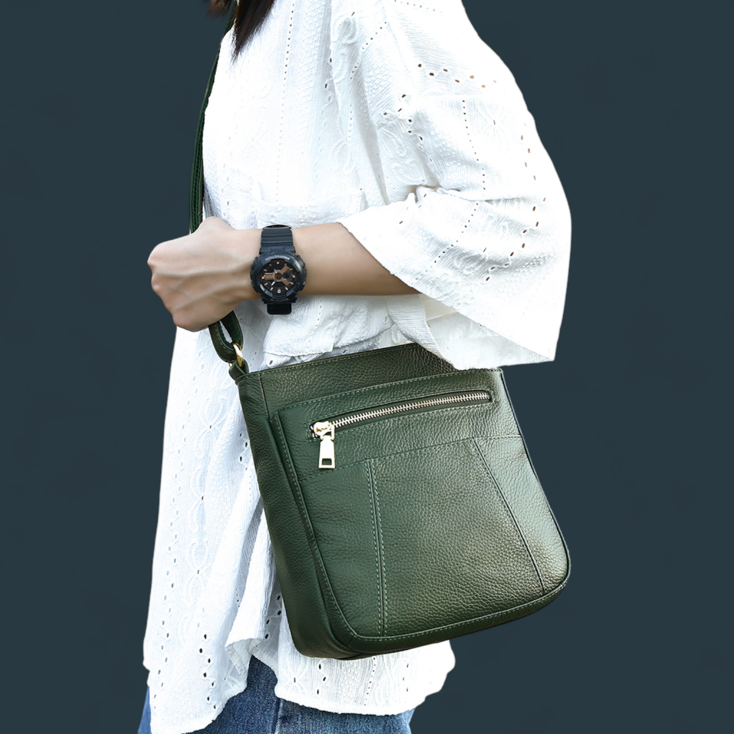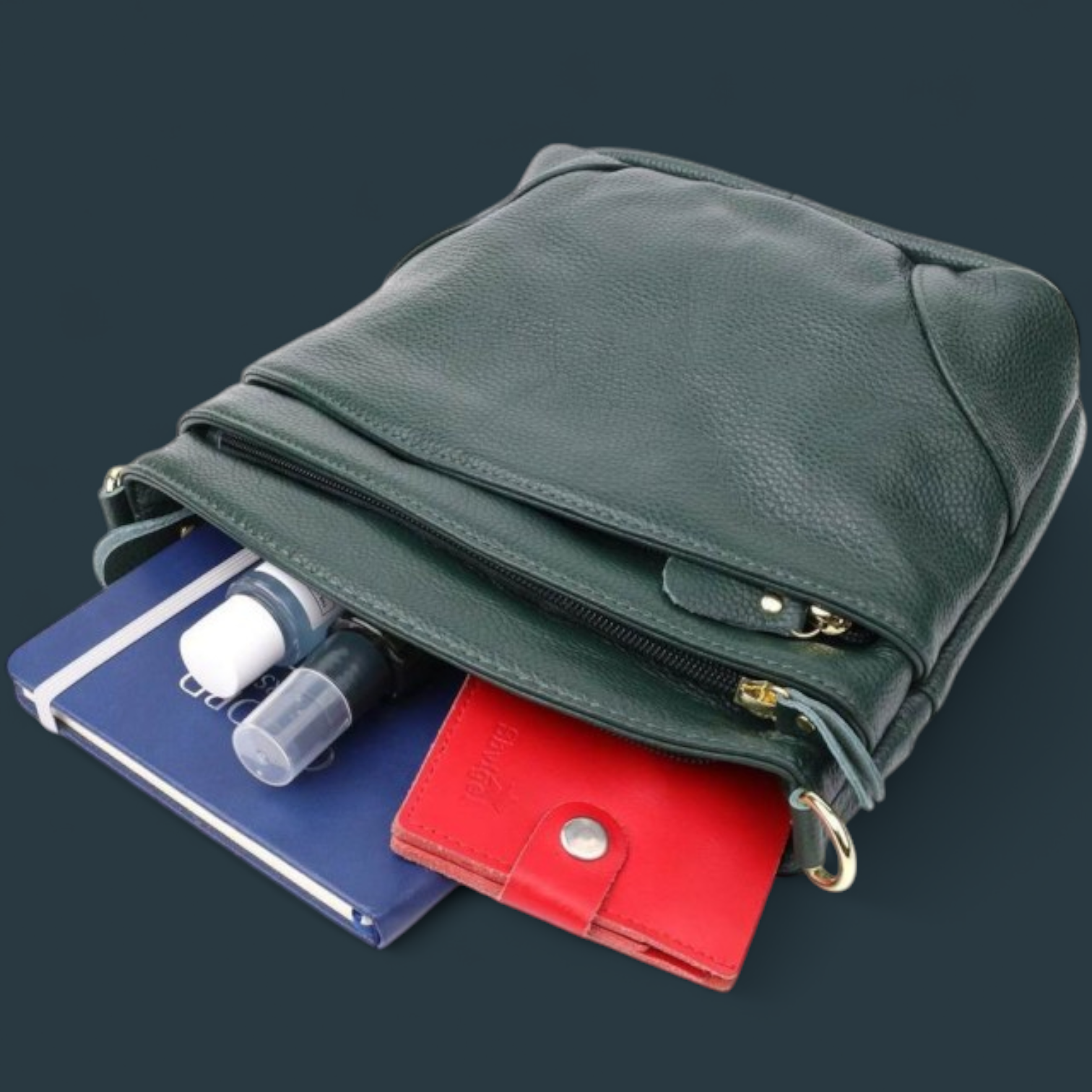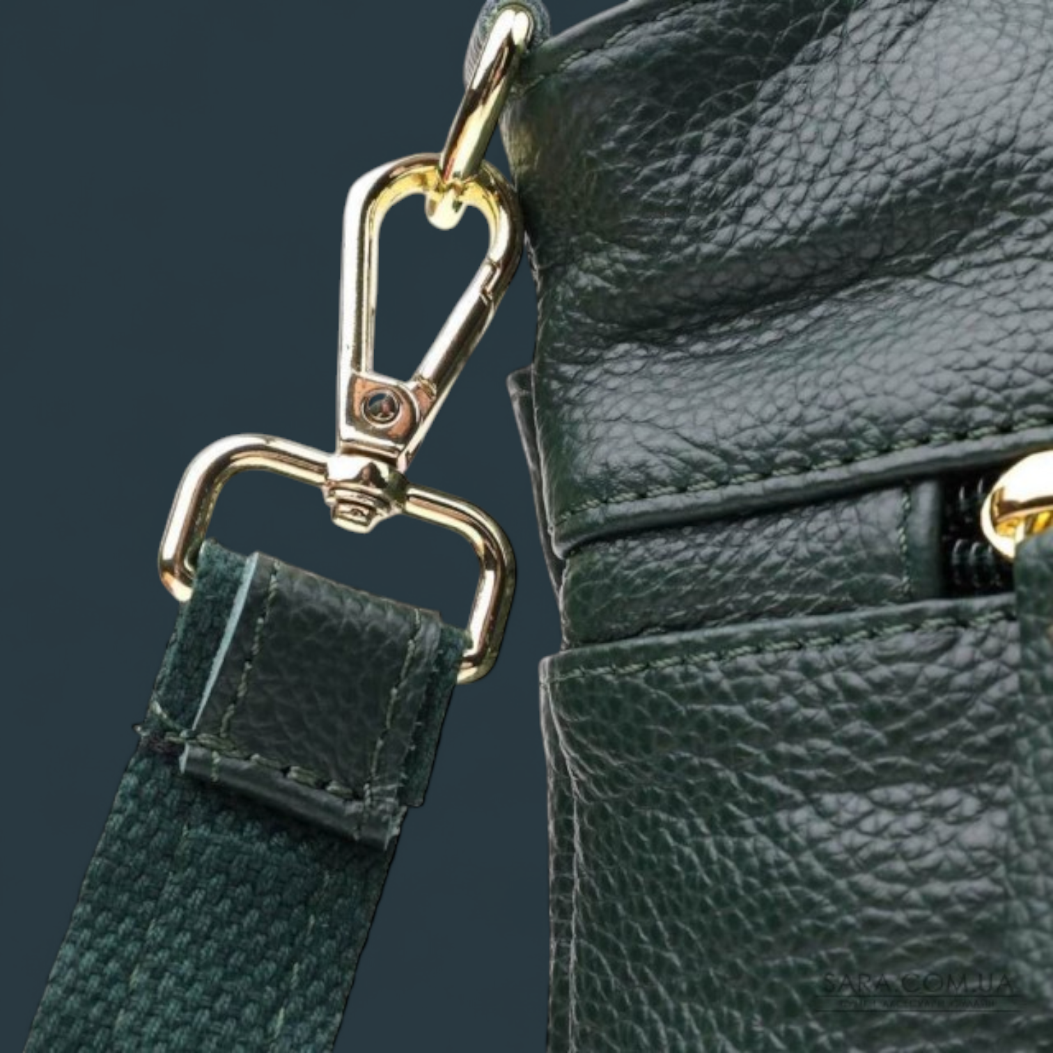 Geanta de umar Lucmark, piele naturala, curea ajustabila, verde, 23x21x10cm