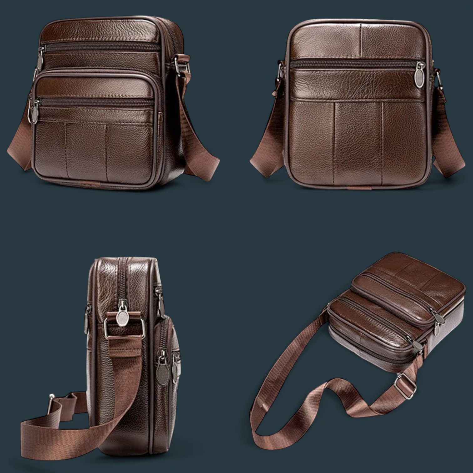Aceasta geanta de umar din piele naturala pentru barbati adauga un plus de stil si functionalitate tinutelor si este perfecta pentru uz zilnic sau calatorii. Cu un design compact si bine organizat, geanta este ideala pentru a-ti pastra obiectele esentiale in siguranta si la indemana.