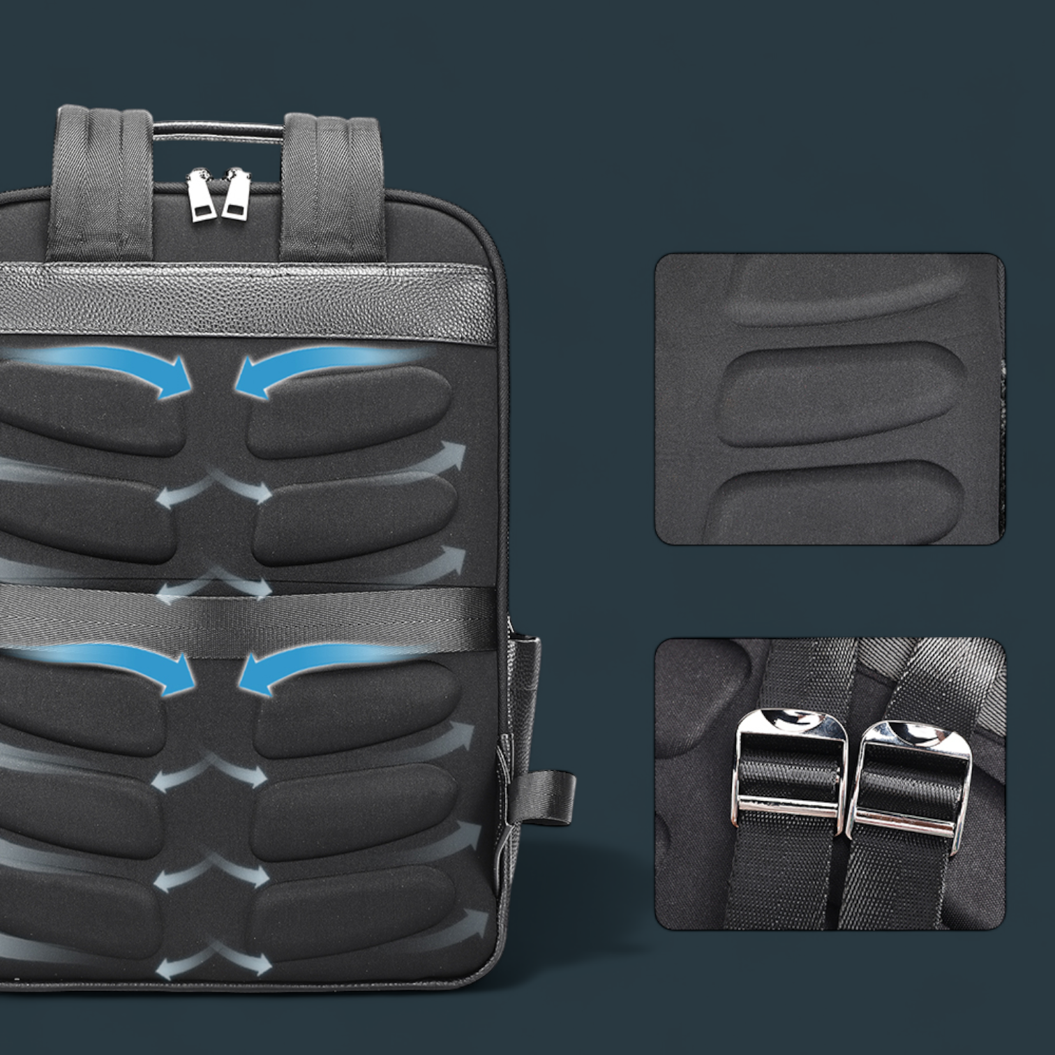 • Bretele reglabile si spate captusit cu burete – Spatele gentii este prevazut cu panouri buretate ergonomice, ce ofera o ventilatie mai buna si reduc presiunea asupra spatelui, ideal pentru utilizare indelungata.