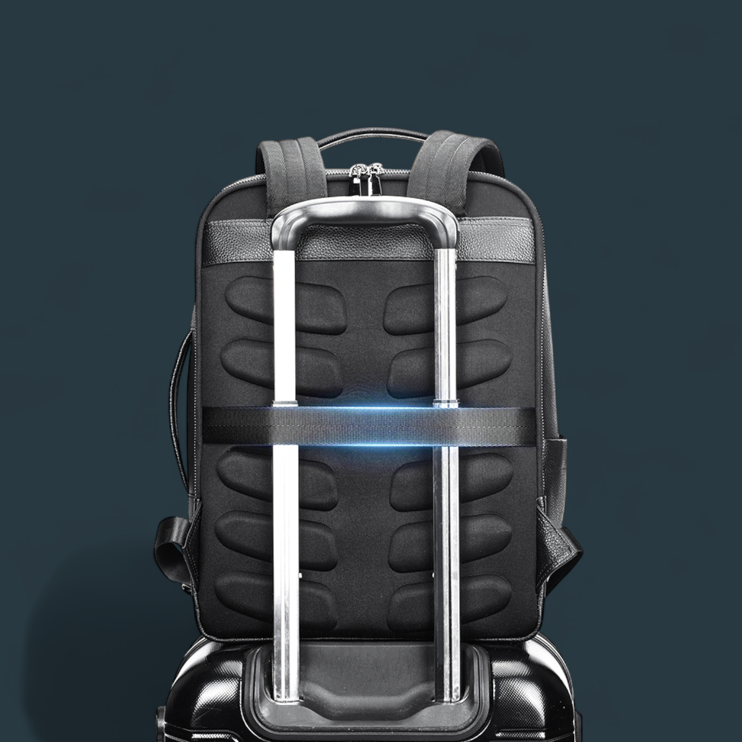 Geanta multifunctionala, Lucmark, piele naturala, 42x30x14 cm, compartiment laptop/tableta, prindere pe troler, spate captusit cu panouri buretate ergonomice, negru