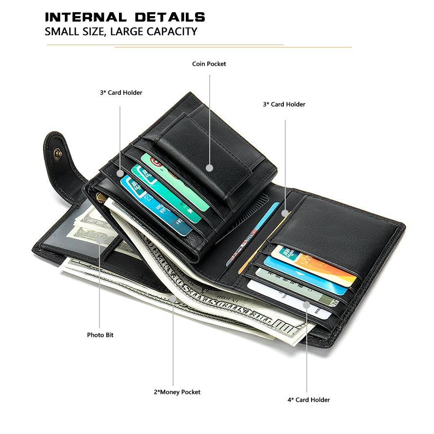 Portofel barbati, Lucmark, piele naturala, 14x10x1.5 cm, Negru